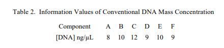 表 2 列出了 NIST SRM 2393亨廷顿病CAG重复长度突变(标准品) 组分的 DNA 质量浓度的信息值。这些值是使用 SRM 2372 人类 DNA 定量标准品中的组分 A 校准的五种定量聚合酶链式反应 (PCR) 方法的结果的平均值。在 hTERT 基因座处扩增的商业定量 PCR 方法的相对较高结果被排除在平均值之外,因为该基因座有时在细胞系 DNA 中过度表达 [4,5]。