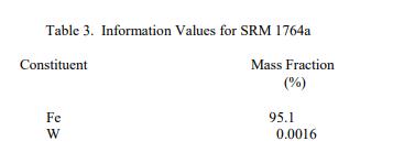 表 3 中报告了两种成分的信息值。信息值被认为是对 SRM 用户有用的值,但没有足够的信息来评估与值相关的不确定性 [2]。
